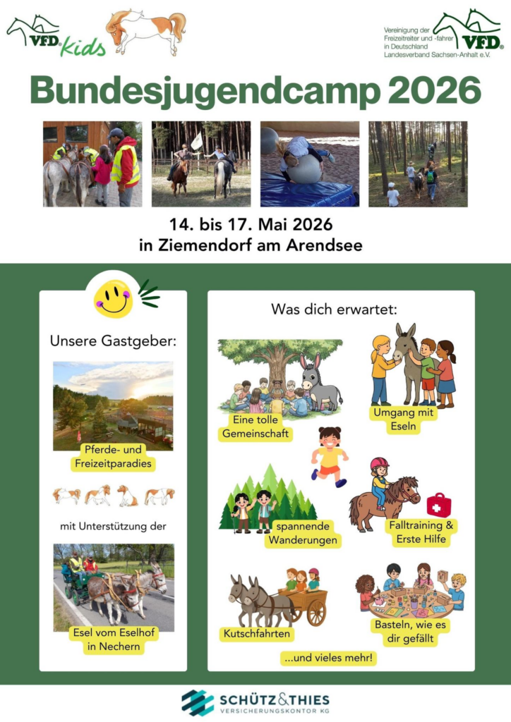 Wir laden alle interessierten Kinder und Jugendlichen ganz herzlich ins diesjährige Bundesjugendcamp nach Ziemendorf am Arendsee ein! Mit Spiel, Spaß und Abenteuern rund um Esel und Mulis freuen wir uns auf eure Teilnahme!